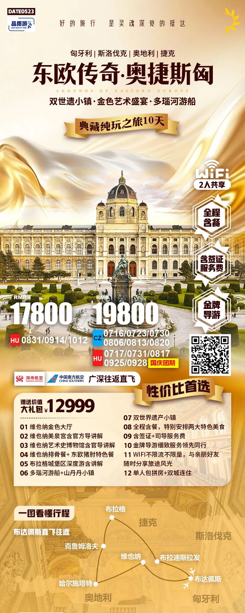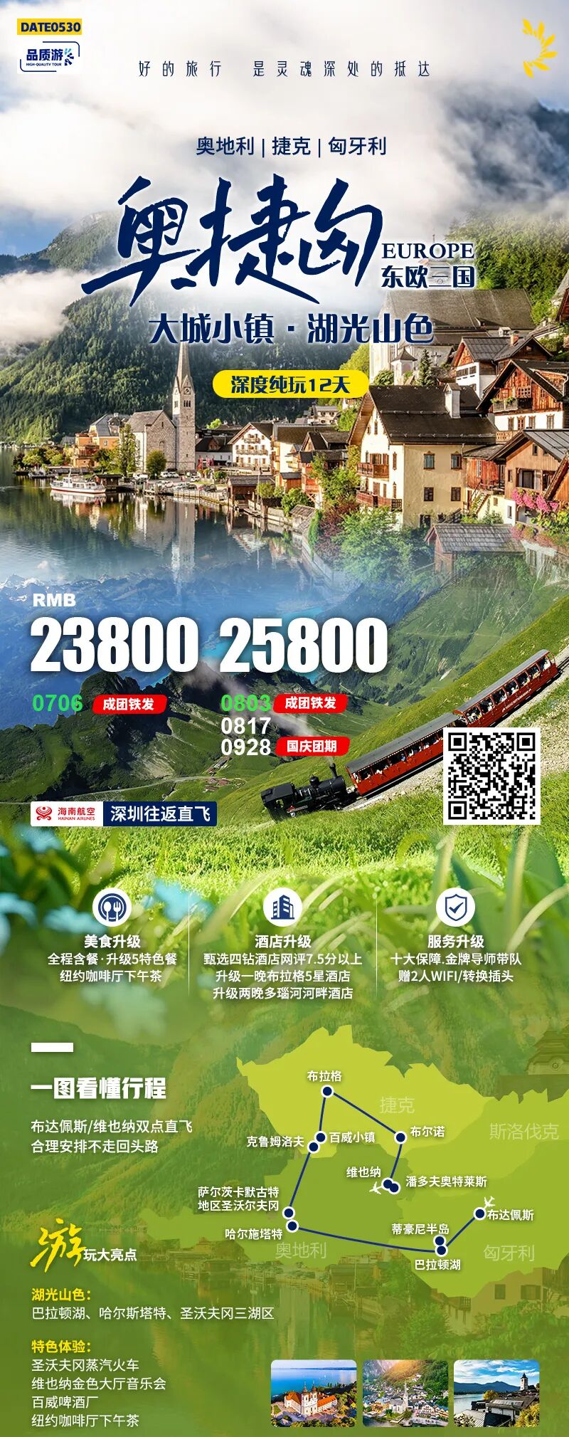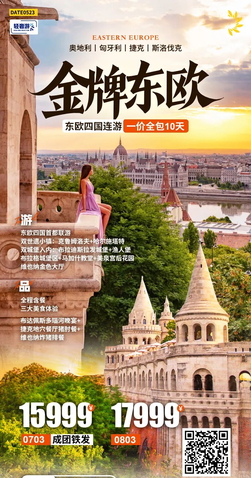畅游捷克、奥地利、斯洛伐克.......多国,一次尽览东欧风光。