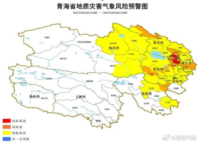 2025年8月5日20时至8月6日20时,青海省自然资源厅与青海省气象局联合发布地质灾害气象风险预警,西宁市湟中区地质灾害气象风险预警等级为I级红色预警,此外多地地质灾害气象风险预警等级为Ⅱ级橙色预警和Ⅲ级黄色预警。青海气象局提醒,红色、橙色预警区内临坡临崖临沟临水人员,请按照当地防灾部门组织立即撤离前往附近避险安置点;黄色预警区内人员,请随时关注预警信息变化,注意附近警示标志,避免在沟谷、斜坡、陡崖等高风险地带逗留。