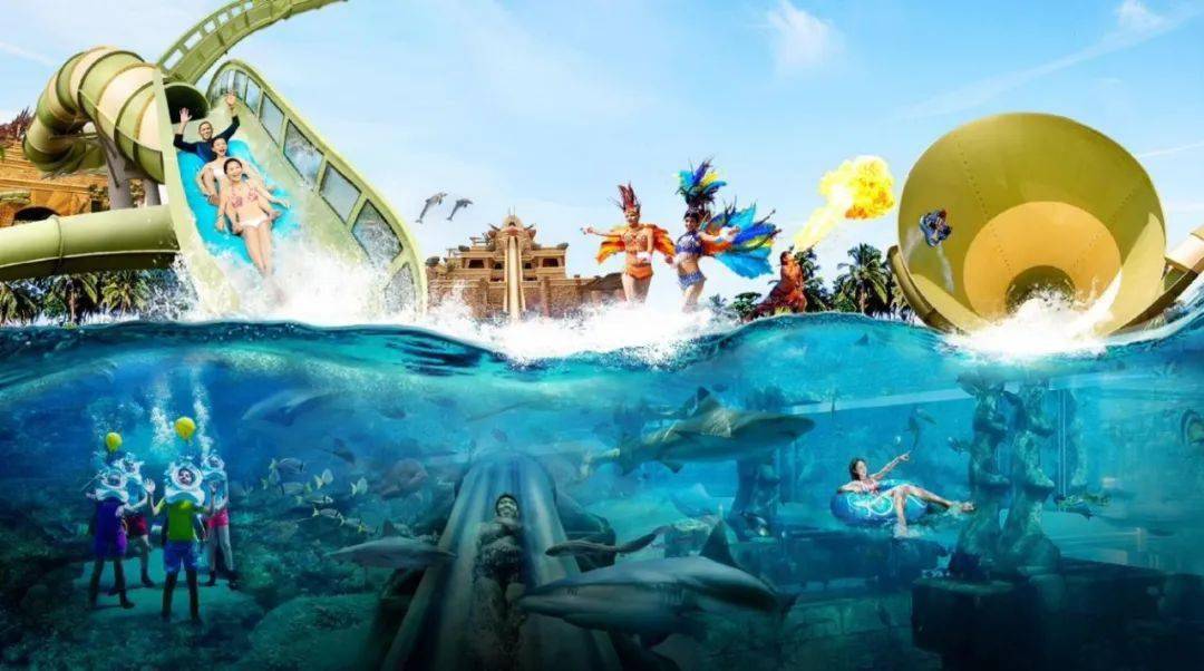 大面积的园区以及各样的游乐设施同时满足你的需求水上项目多种多样鲨鱼穿越、海神之跃、儿童水世界等等。