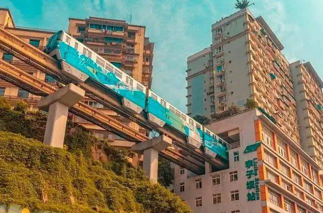 因其"空中列车穿楼而过"成为名声大噪的网红车站,有专门的观景台拍照,可以看"轻轨穿楼"的奇观。