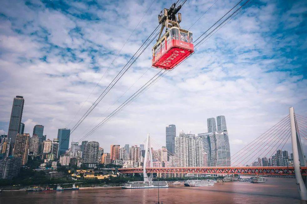 重庆一种很有特色的交通工具,横跨长江,感受空中交通低空飞行的快乐。