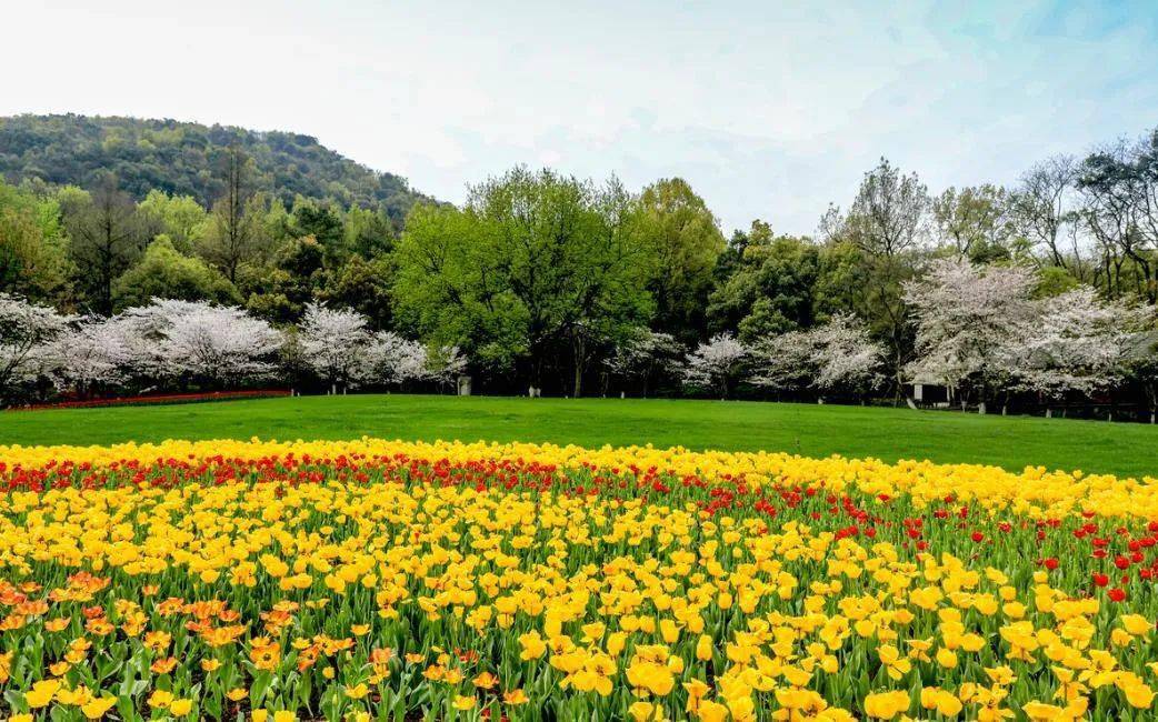 小园内遍布玉兰、含笑、樱花等观赏花木,衬以绣球、火棘,花影照眼,馨香沁人。