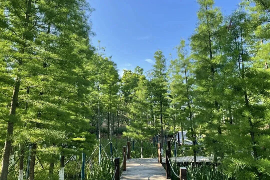 漫步宁静清新的林间木栈道