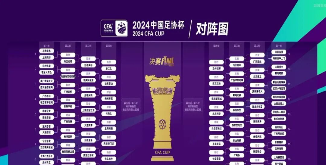 2024中国足协杯新赛季第一轮比赛于今天下午开赛,西安两支球队西安荣海与西安高新易联将于明天下午首次亮相,参加本季足协杯的另一支我省球队陕西联合将于4月下旬第二轮比赛登场。中国足球协会杯(Chinese Football Association Cup)创始于1956年,是新中国历史上最悠久的足球赛事,也是国内男子足球最高水平的淘汰制足球杯赛,赛事秉承“全民足球-Game for all”的理念,是联结中国草根足球和职业足球的重要生态通道,覆盖中超联赛、中甲联赛、中乙联赛和业余俱乐部。本届足协杯第一轮由16支资格赛优胜队伍分别在主场面对部分中乙、中冠队以及足协杯资格赛其他队伍,时间为3月15日至17日。第一轮晋级的16支队伍将在第二轮坐镇主场,面对16支中乙队伍,时间为4月20日至22日。第二轮晋级的16支队伍将在第三轮坐镇主场,面对16支中甲队伍,时间为5月17日至19日。第三轮晋级的16支队伍将在第四轮坐镇主场,面对16支中超队伍,时间为6月21日至23日。第四轮结束后,将进行第二次抽签,确定五至八轮的对阵和主客场安排。第五轮为八分之一决赛,7月15日至17日进行。第六轮为四分之一决赛,8月20日至22日进行。第七轮为半决赛,9月24日至26日进行。第八轮为决赛,11月25日进行。新赛季足协杯我省分别有陕西联合、西安荣海、西安高新易联三支球队参赛。西安高新易联足球俱乐部在我省业余联赛中极具知名度,俱乐部成立于2005年,最初主要由退役运动员、青训教练、市内大中专院校中小学老师及业余足球爱好者组成,曾多次获得省市级联赛冠军,明天下午西安高新易联将在客场挑战曲靖宜步,争夺进入下一轮的名额。西安崇德荣海足球俱乐部成立于2021年,上赛季以延安为主场的西安荣海在中冠赛场表现不俗,在总决赛A组中排名第二,但在冲乙的关键战交叉淘汰赛中遗憾失利,未能直接晋级。本赛季由于济南兴洲足球俱乐部在赛季前退出中甲联赛,西安荣海得以递补参加中国足球协会乙级联赛。明天下午西安荣海将客场征战足协杯,对手是厦门鹭建天成。陕西联合本季足协杯亮相时间被安排在了足协杯第二轮的4月下旬,对手将是第一轮长春喜都与兰州海陆的胜者。 今天下午2024中国足协杯首轮首个比赛日共有5场比赛,比赛结果:上海申水2:0上海同济大学,杭州五岳钱塘1:0宁夏人方众,山西翔宇4:1青岛鲲鹏,黔西南栩烽棠3:0武汉小马过河,广西布山2 :0宁夏平罗恒利。来源:微澜???????责编:杨晓波???校对:雷家乐 刘佳玉???