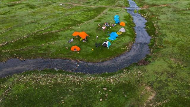炎热的夏天,来这里最适合不过了。草埔、流水、清风,用最清凉的慢时光把大草原与外界的喧嚣隔绝开来,远处层层叠叠的山峰,在一大片绿色草埔的笼罩下简直就像进入了世外之境。