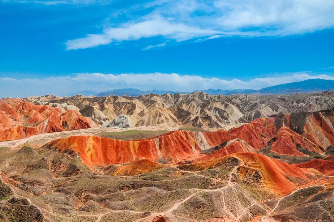 继续向北行驶,公路与古老的河西走廊在张掖交汇。张掖七彩丹霞闻名于世,数百万年地质演变造就的彩丘地貌,在阳光下呈现出令人眩晕的色彩交响。