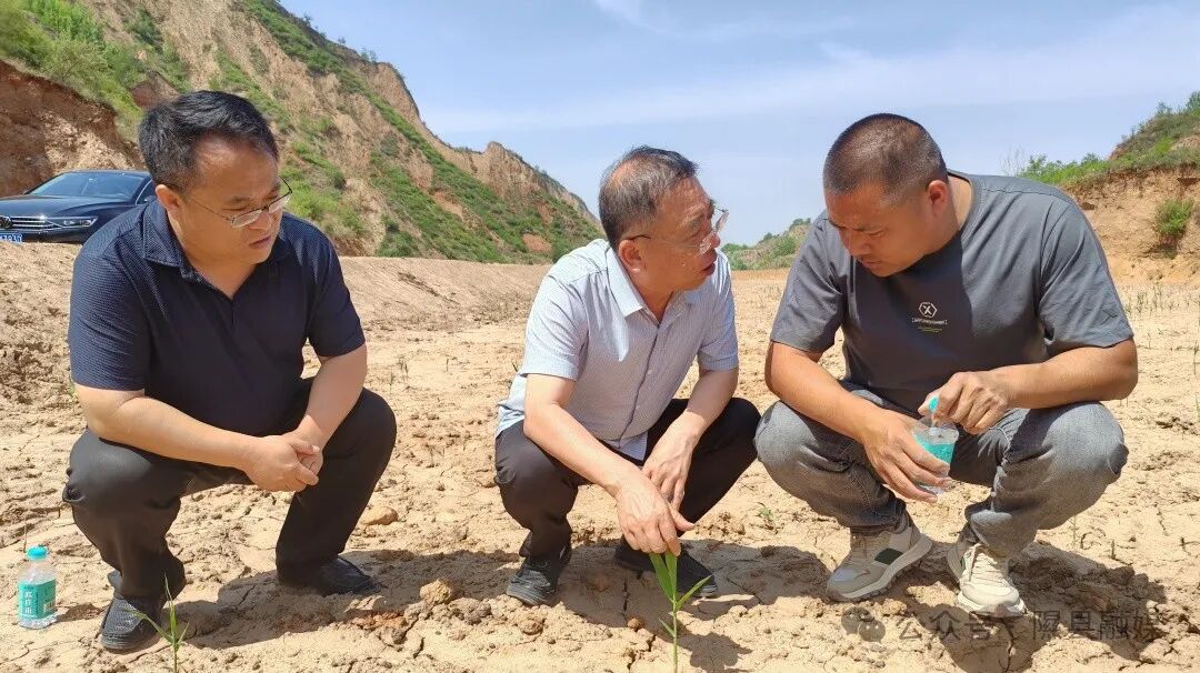 5月26日,龙泉镇党委书记毕小龙、党委副书记张志宏在刘家庄村实地查看集体经济项目粽叶种植项目进展情况。