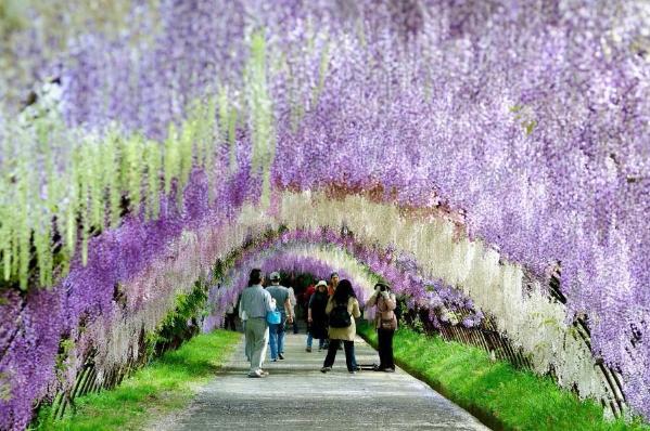 福冈县“河内藤园” 日本最美紫藤萝隧道