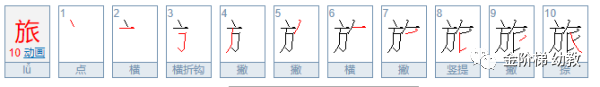 旅字是多少笔画?旅的第四笔和及的第一笔笔画一样都是撇吗