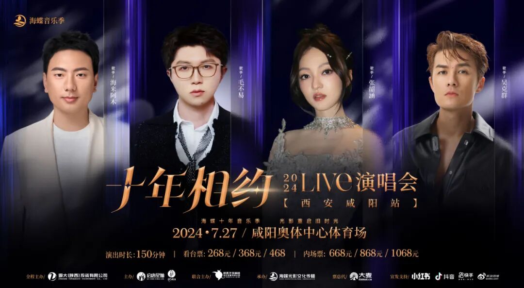 海蝶十年音乐季,光影重启旧时光,2024十年相约LIVE演唱会【西安咸阳站】等你相约。