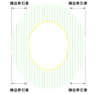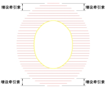 第三步:上层未牵引的索端增设牵引索,所有牵引索收至0.5m。