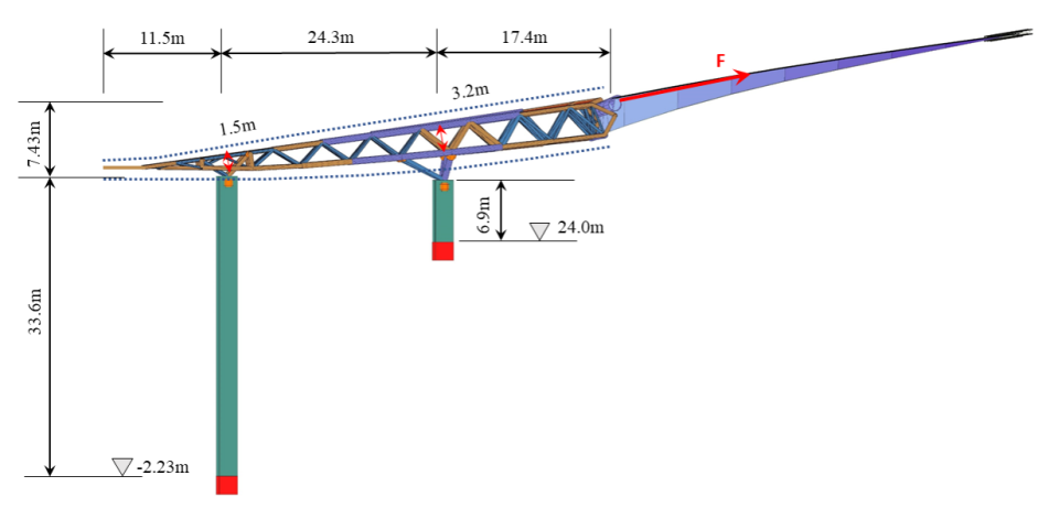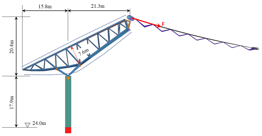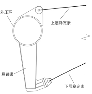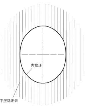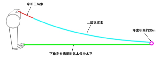 第二步:提升至环索标高约35m,将下层稳定索锚接就位。