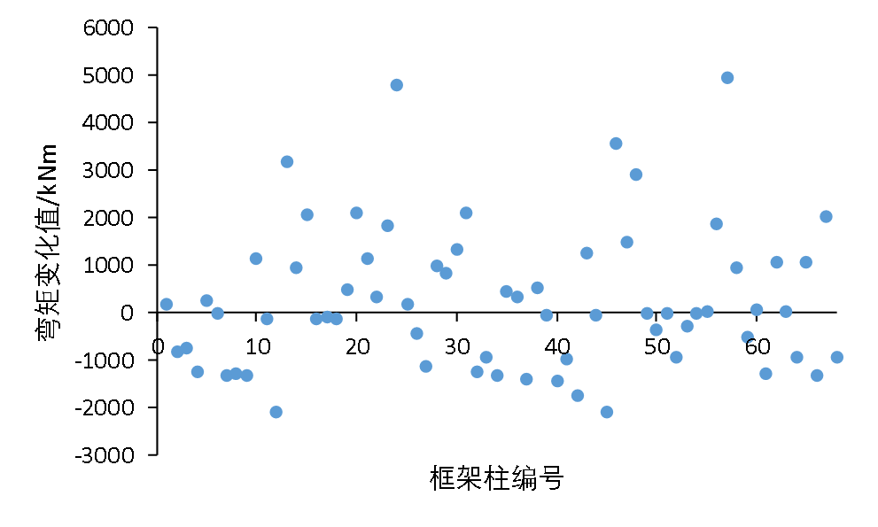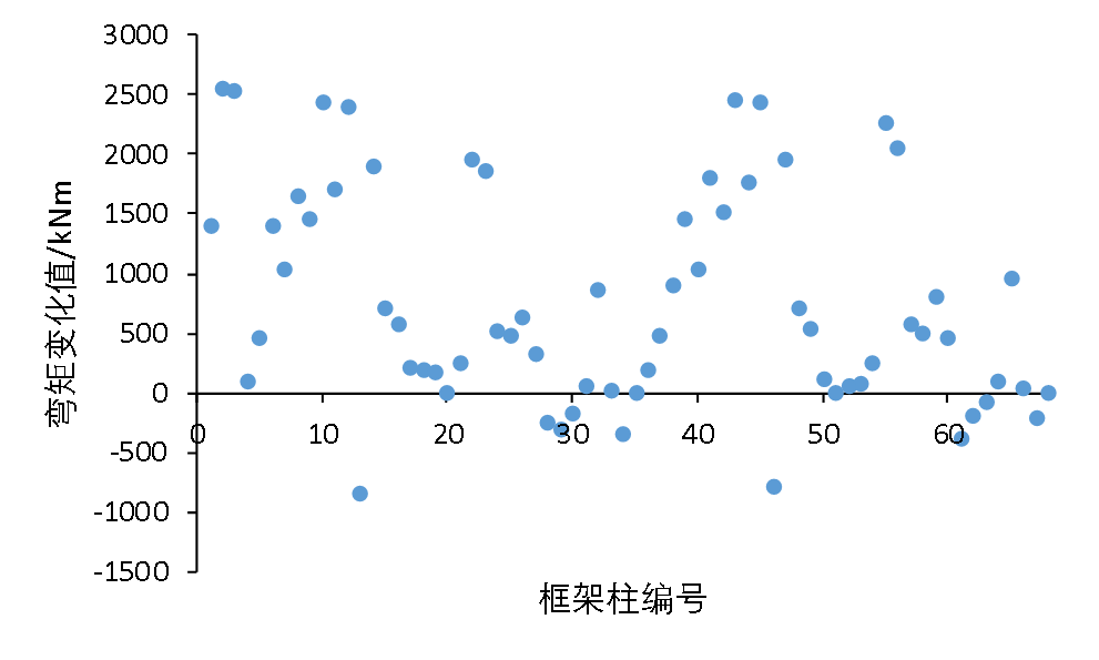 图11 完全固定铰支座相较施工阶段可滑动支座框架柱弯矩变化值