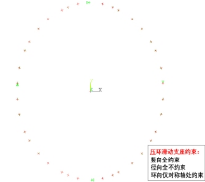 索网施工前序:外围结构卸载后,环桁架下胎架反顶(仅接触),支座径向临时固定。
