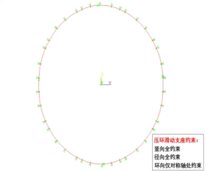 ① 由于外压环整体较柔,设计单位在计算时通过给外压环施加初压应力以控制外压环变形在合理范围之内,由于初压应力的引入,外压环的加工制作长度和拼装形状较于设计建模位形将产生不可忽略的差别,而设计单位提供的图纸中所有坐标均为结构设计建模态坐标,不能直接作为构件的加工及安装坐标。因此,外压环安装态的几何位形均需要通过精细的零状态找形分析来确定。