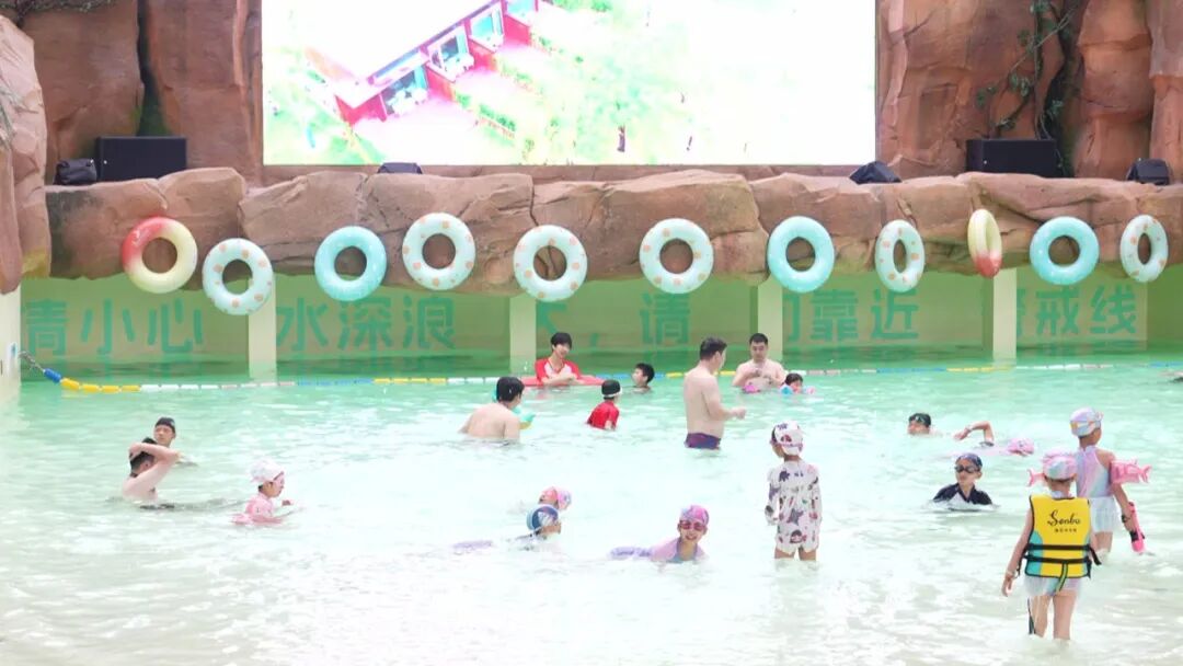 踏入水乐园,欢快的尖叫声和水花声便扑面而来。孩子们早已换上鲜艳的泳衣,像一条条活泼的小鱼,一头扎进泳池里。隔壁的幻想岛内,同样成了孩子们游玩的“城堡”,蜿蜒的滑梯、紧张刺激的攀岩区……整个游乐区宛如一个童话世界,孩子们肆意地在这里奔跑、玩耍,现场满是欢声笑语。