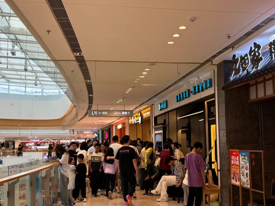 县城的吾悦广场,今天同样非常热闹,商场内人山人海。四楼餐饮区更是火爆异常,各家餐厅门口都排起了长队,部分店铺甚至已经叫到了100多号。点单、取号、送餐、结账……服务员们丝毫没有空闲时间。