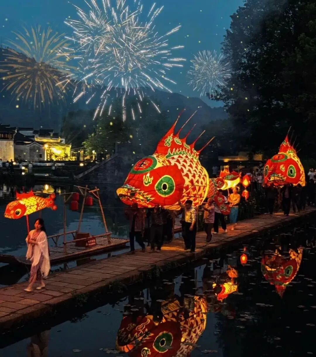 夜色揽徽韵:屯溪区花山谜窟、屯溪区三江口时尚街区、屯溪区黄山演艺城、徽州区大灵山旅游度假区、徽州区呈坎景区、歙县徽州古城、休宁县齐云山生态文化旅游度假区、黟县西递水幕光影秀、黟县古城、祁门县东街历史文化街区